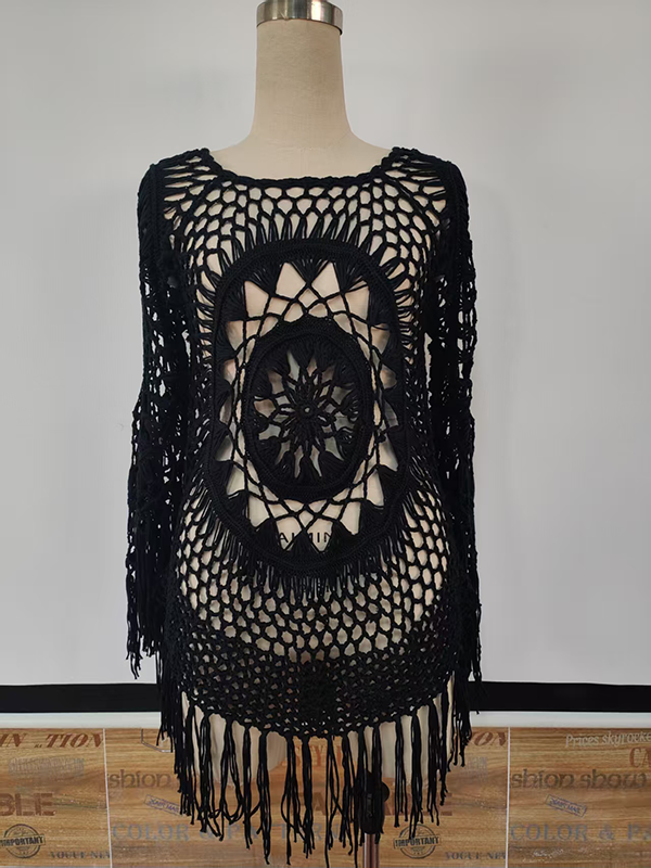 Type: Pullover Crochet Hollow Tassel Long Sleeve   Panel Style: Crochet